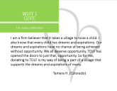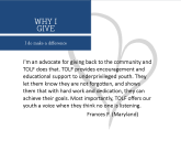 Submit your story about why you support our organization, mission and programs and your Donor Love story will get posted too!