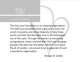 Copyright © 2014. The One Less Foundation. All Rights Reserved. Philadelphia PA. Contact Us