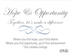 "I thank God for THE ONE LESS FOUNDATION . . . I have learned so much and grown so much in my life for the past couple of weeks. The programs they offer are things that I have been wanting to do, but I did not know how or where to start. Now that I found this opportunity to learn, I will learn every bit of the valuable lessons in these programs. I want to thank the founder of THE ONE LESS FOUNDATION for opening her door to the world especially for the younger people so we can come together to learn and make a difference."